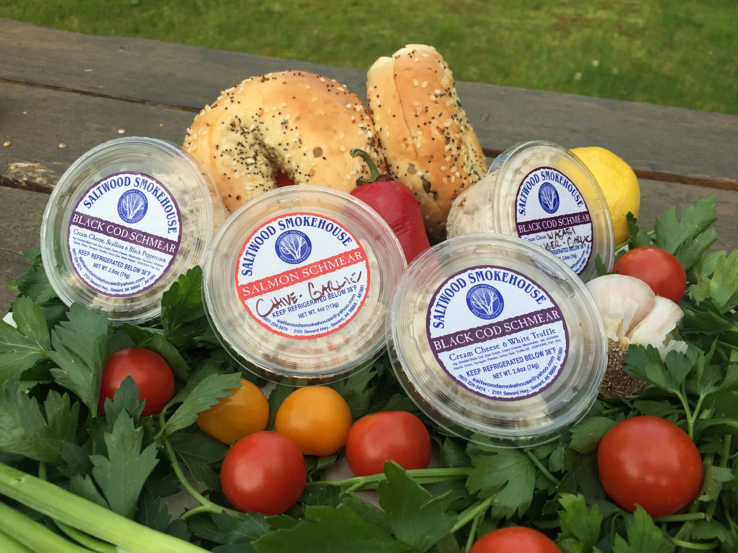 We’ve worked hard to bring delectable treats to you, with an eye toward innovation, and the finest ingredients available. Using our smoked fish as a base, including an award-winning Smoked Black Cod Dip, an equally delicious Smoked Salmon Dip, as well as a variety of delectable Smoked Black Cod Bagel Schmears. Our signature flavors are Smoked Black Cod with White Truffle or Wasabi Ginger and Garlic, and our most recent addition is Smoked Salmon with Garlic Chive and White Pepper schmear.